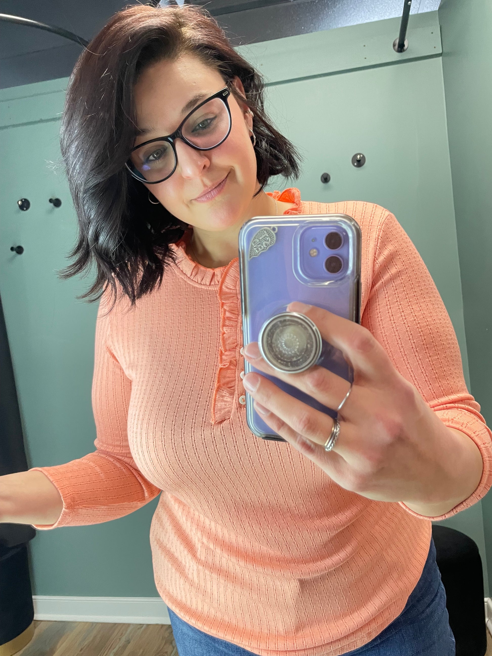 The Candy Rose Rib Knit Ruffle Button Front Is Designed With A Blush Eyelet Rib Fabric That Enhances Comfort While Providing A Stylish Appearance. The Long Sleeves And Ruffle Details Offer A Blend Of Elegance And Functionality, Making It Suitable For Various Occasions.