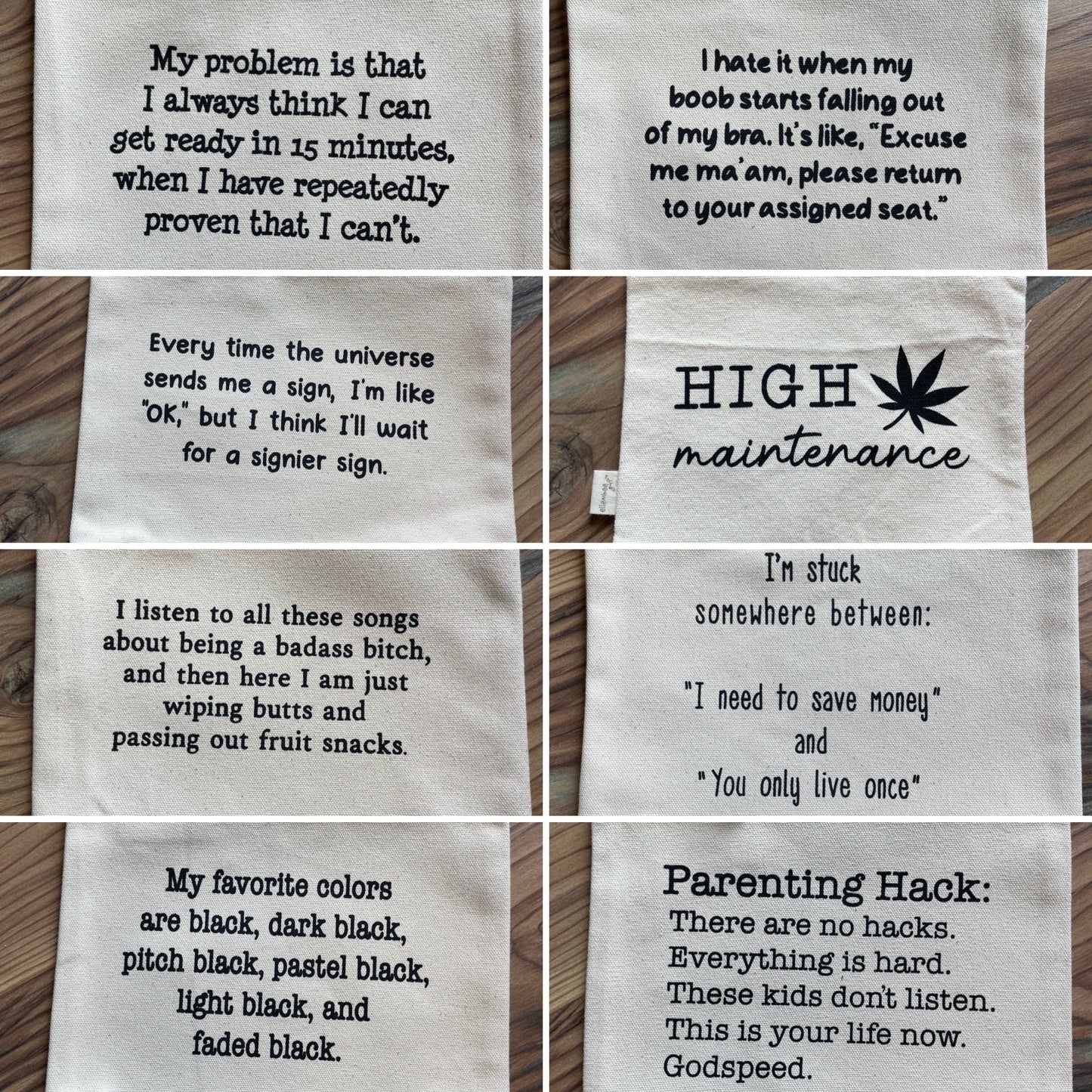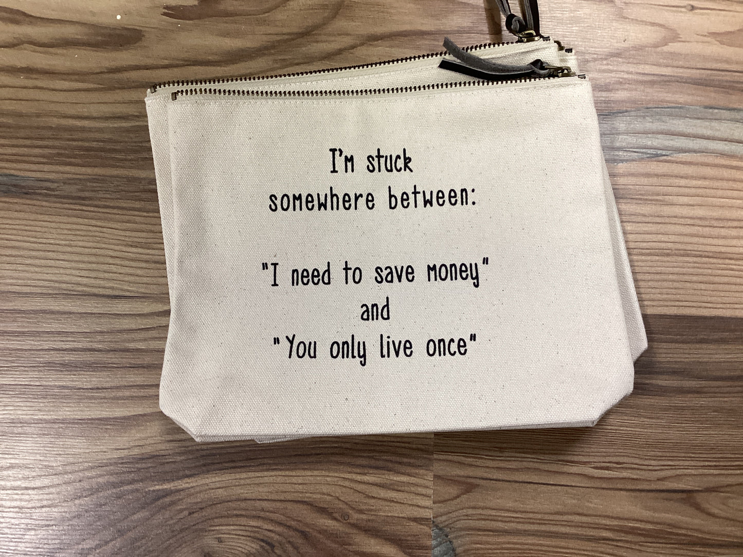 Canvas Saying Pouches Are A Great To Have And Make Great Gifts. Comes In 8 Different Sayings.