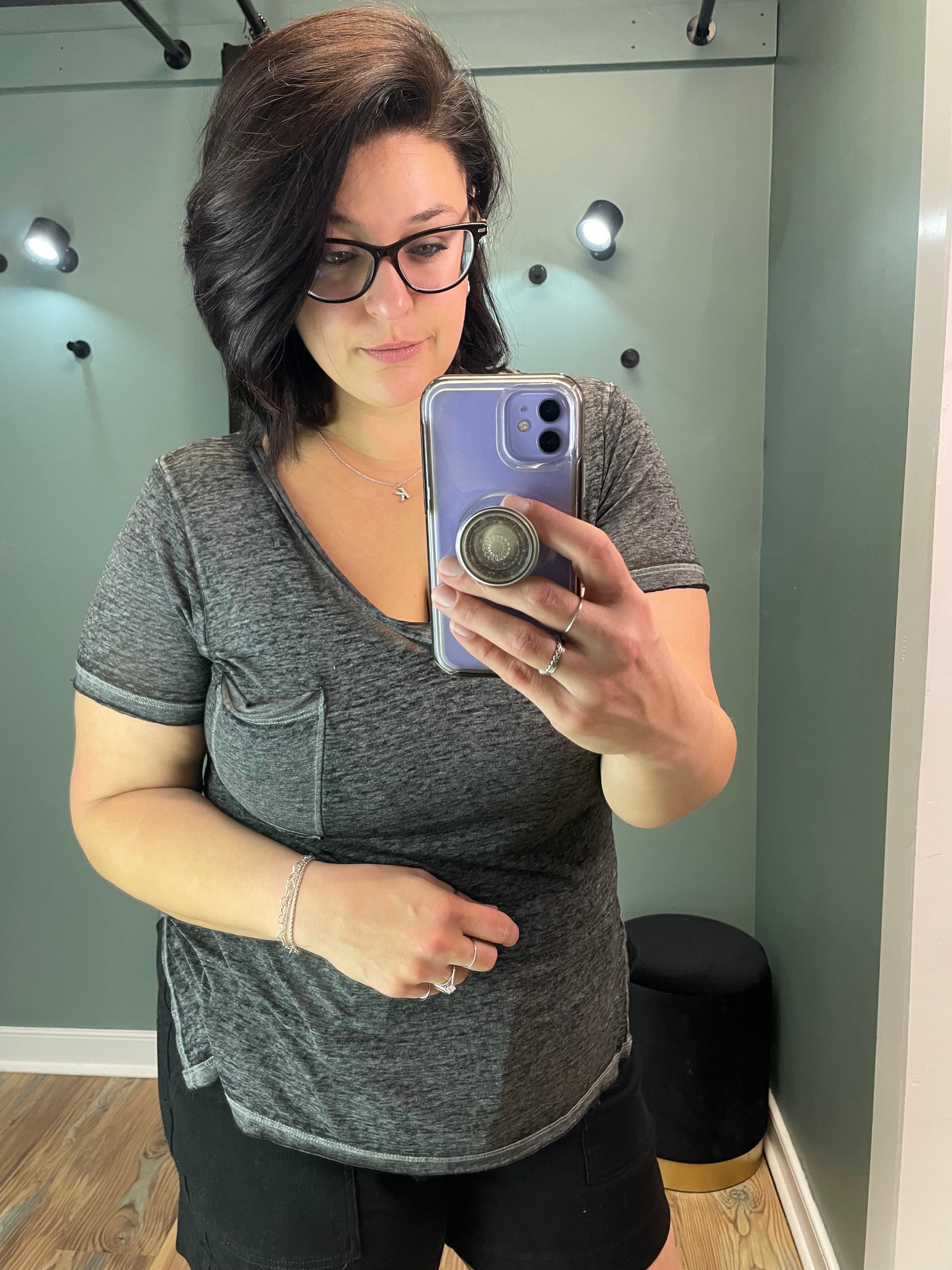 Our Charcoal Burn Out T Is Your Perfect Go To Top! The Scoop Neck, Side Slits And Short Sleeves Provide A Relaxed Fit, Making It Ideal For Layering Or Wearing On Its Own. This Stylish T Shirt Combines Comfort With A Trendy Look, Ensuring You Feel Confident All Day Long.
