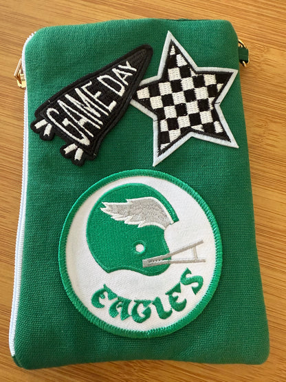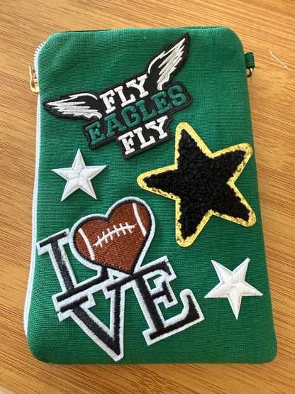 Functional Stadium Sized Crossbody Bag Custom Made With An Assortment Of Unique Patches. Each Bag Comes With Gold Crossbody Skinny Chain, A Zipper Pouch, And An Easy Access Magnetic Pocket For A Cell Phone. Please Choose Style Based On Correlating Photo To Item.