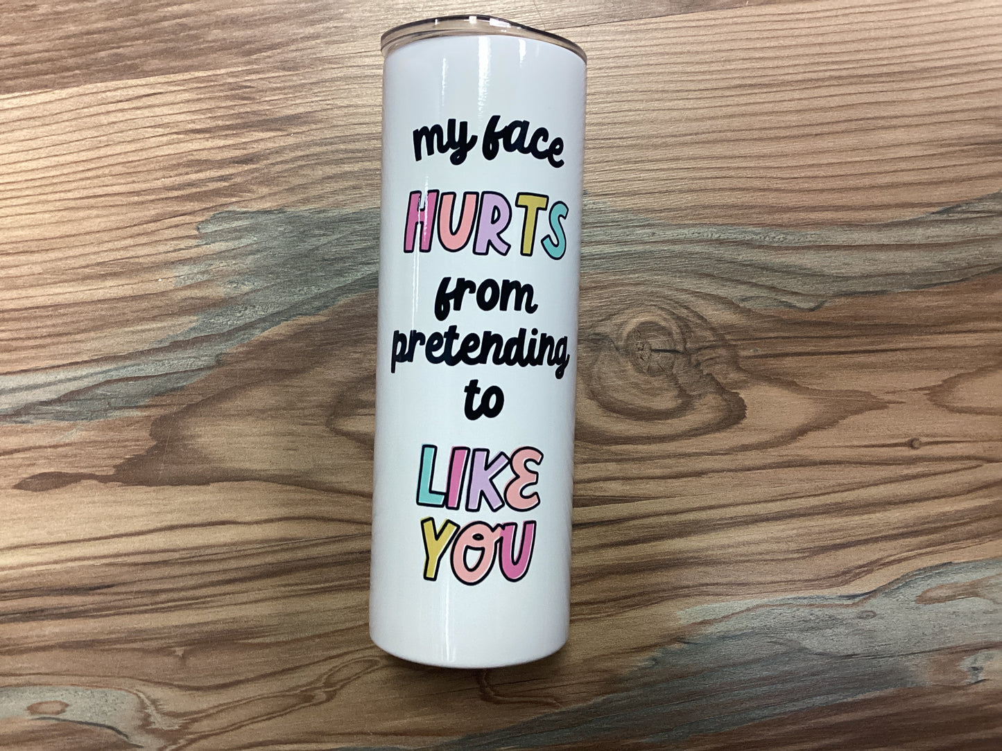 20oz Travel Cup With “My Face Hurts From Pretending To Like You.”