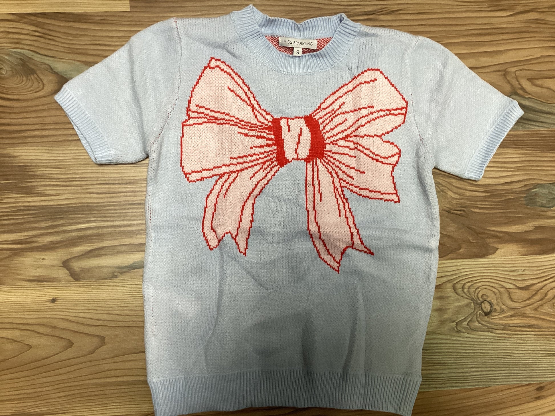 Light Blue Bow Short Sleeve Sweater