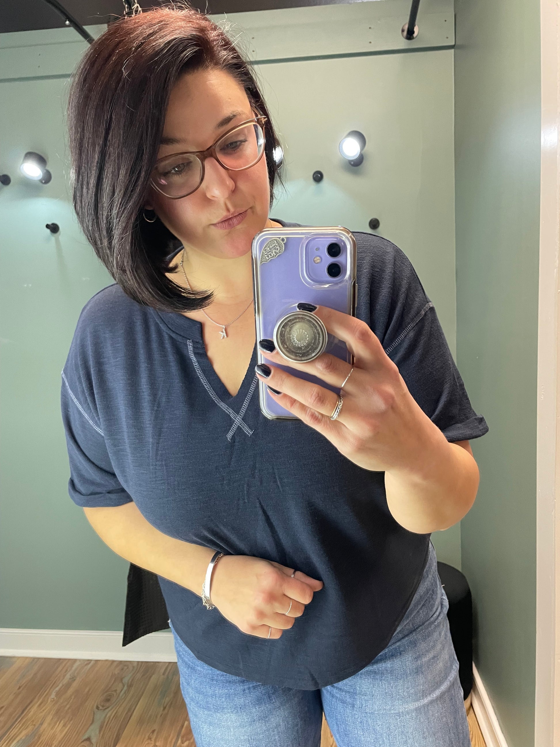 This Navy Contrast Stitch V Neck Knit Short Sleeve Is A Must Have For Any Fashion Forward Individual. The Knit V Neck With Contrast Stitch Detail Adds A Fun Touch, While The Cuffed Short Sleeves Provide Comfort And Style. Perfect For Year Round Wear, This Top Is A Versatile Addition To Any Wardrobe.