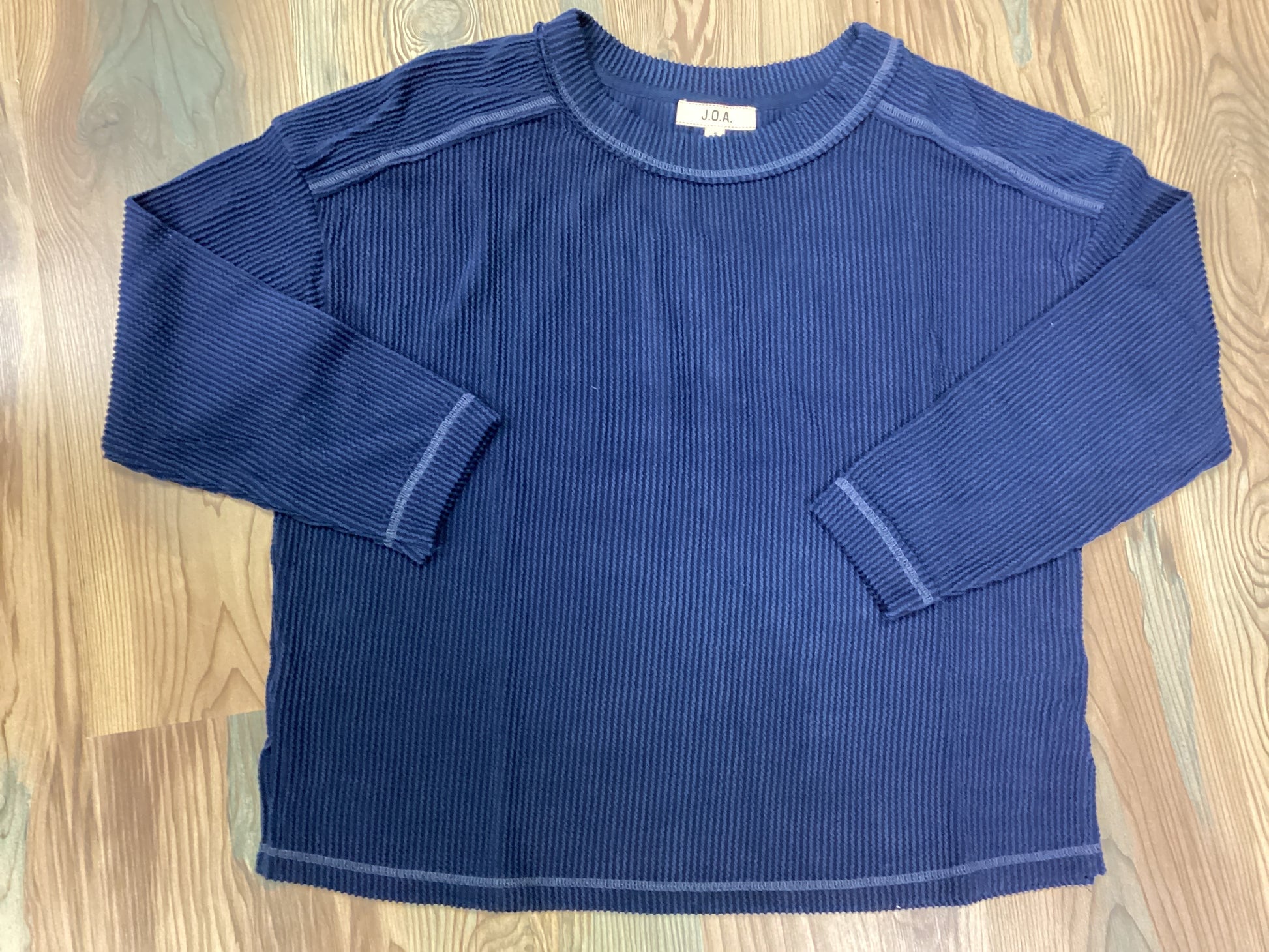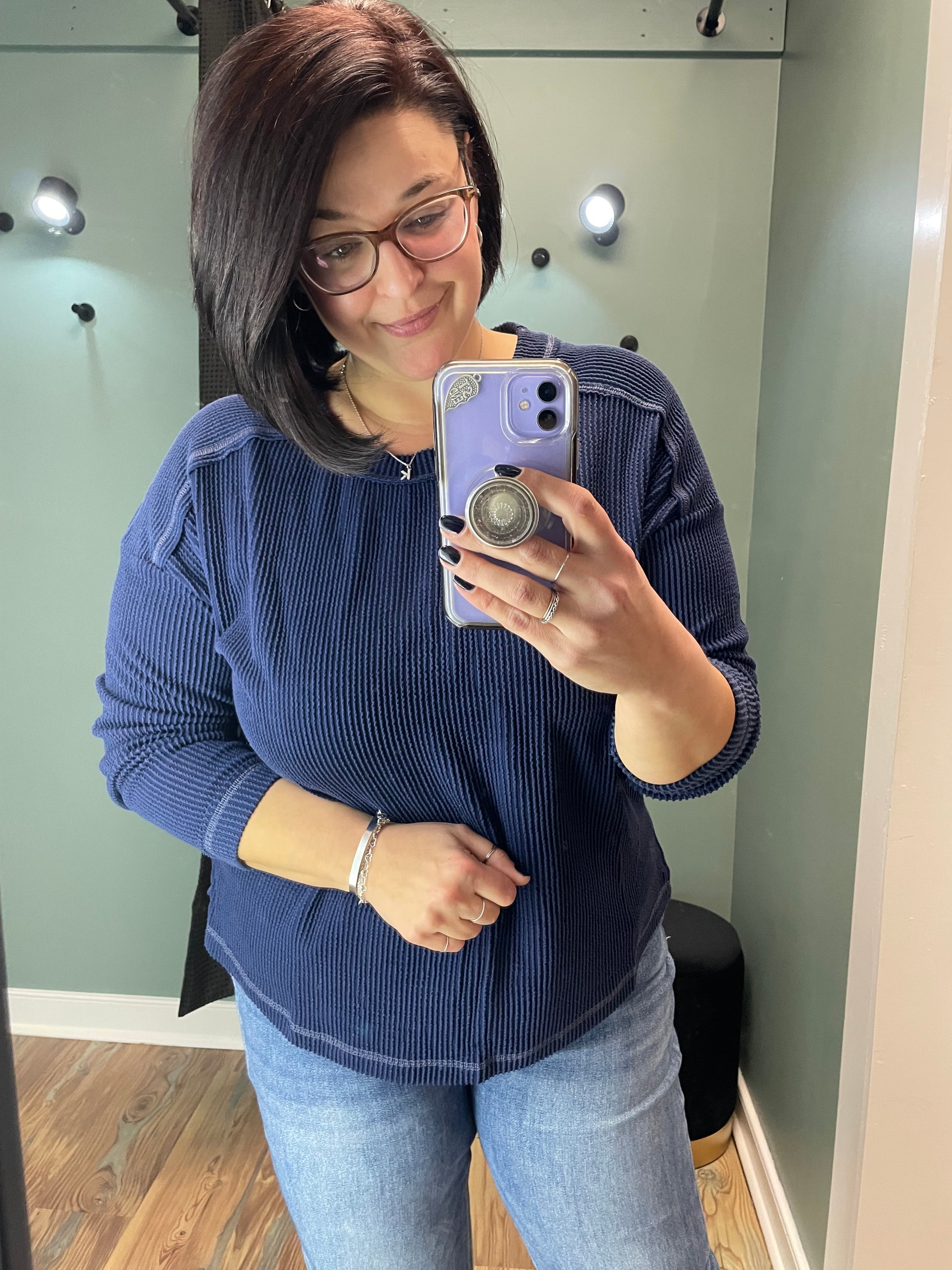 Experience Comfort And Style With Our Ribbed Navy Long Sleeve. Made With Urban Ribbed Material, This Top Features Side Slits For A Unique And Trendy Look. Perfect For Any Casual Occasion.