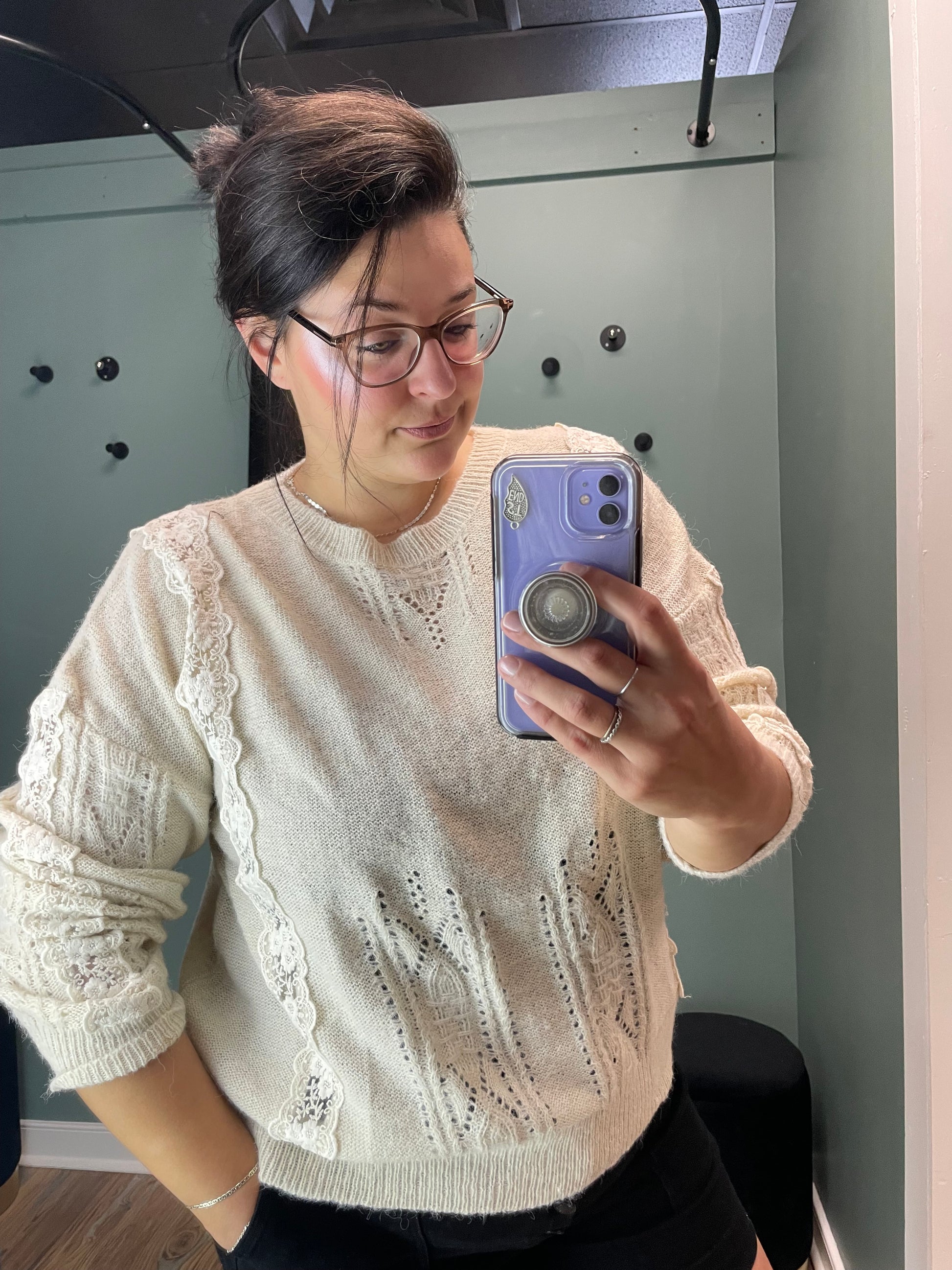 Off White Lace Eyelet Knit Is Super Soft And Light Weight. Looks Great Paired With Jeans And Boots.