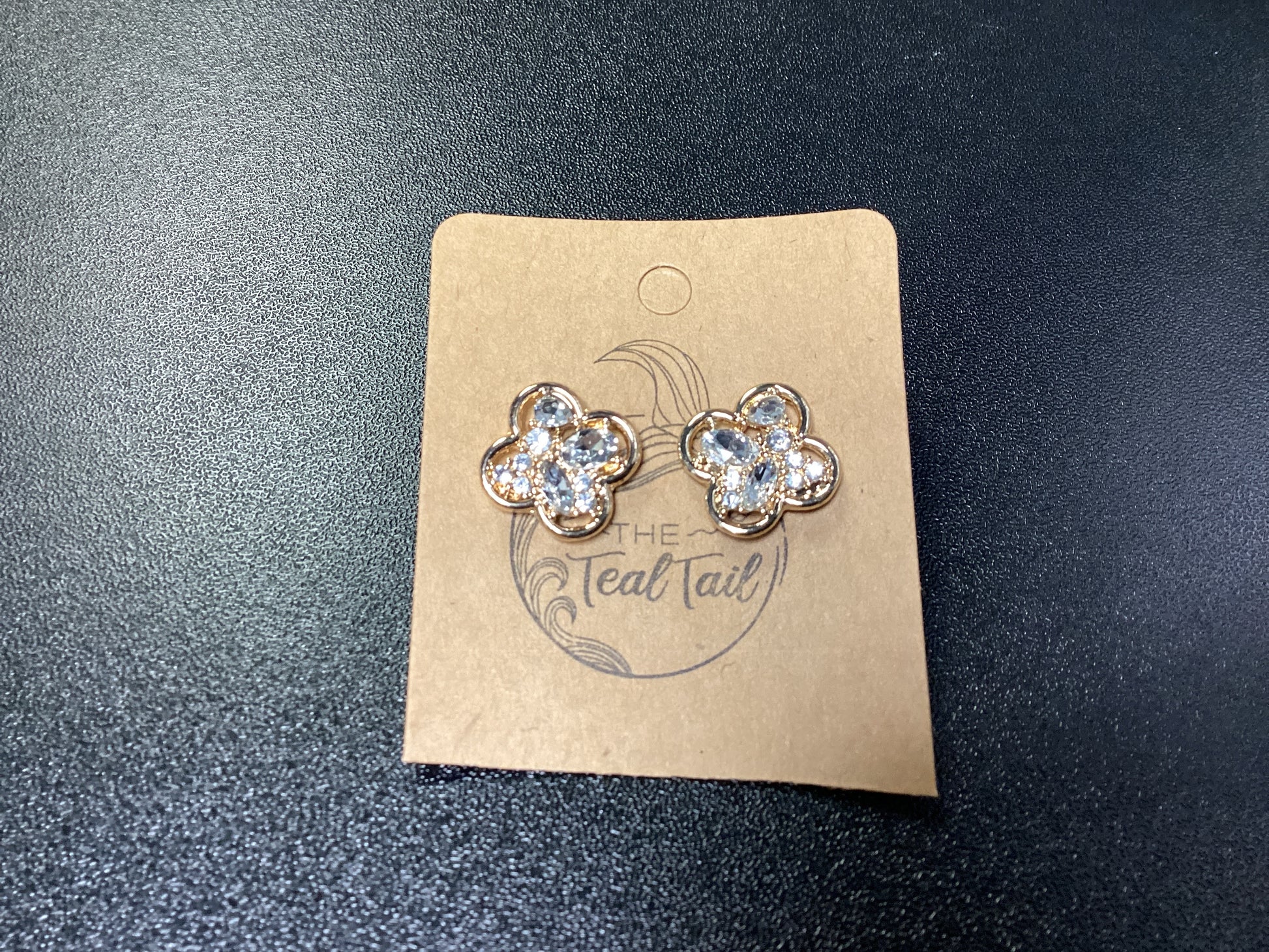 These Elegant Stud Earrings Feature A Four-Petal Floral Design With Sparkling Clear Stones Set In A Gold-Tone Finish, Adding A Touch Of Shine And Sophistication To Any Look.