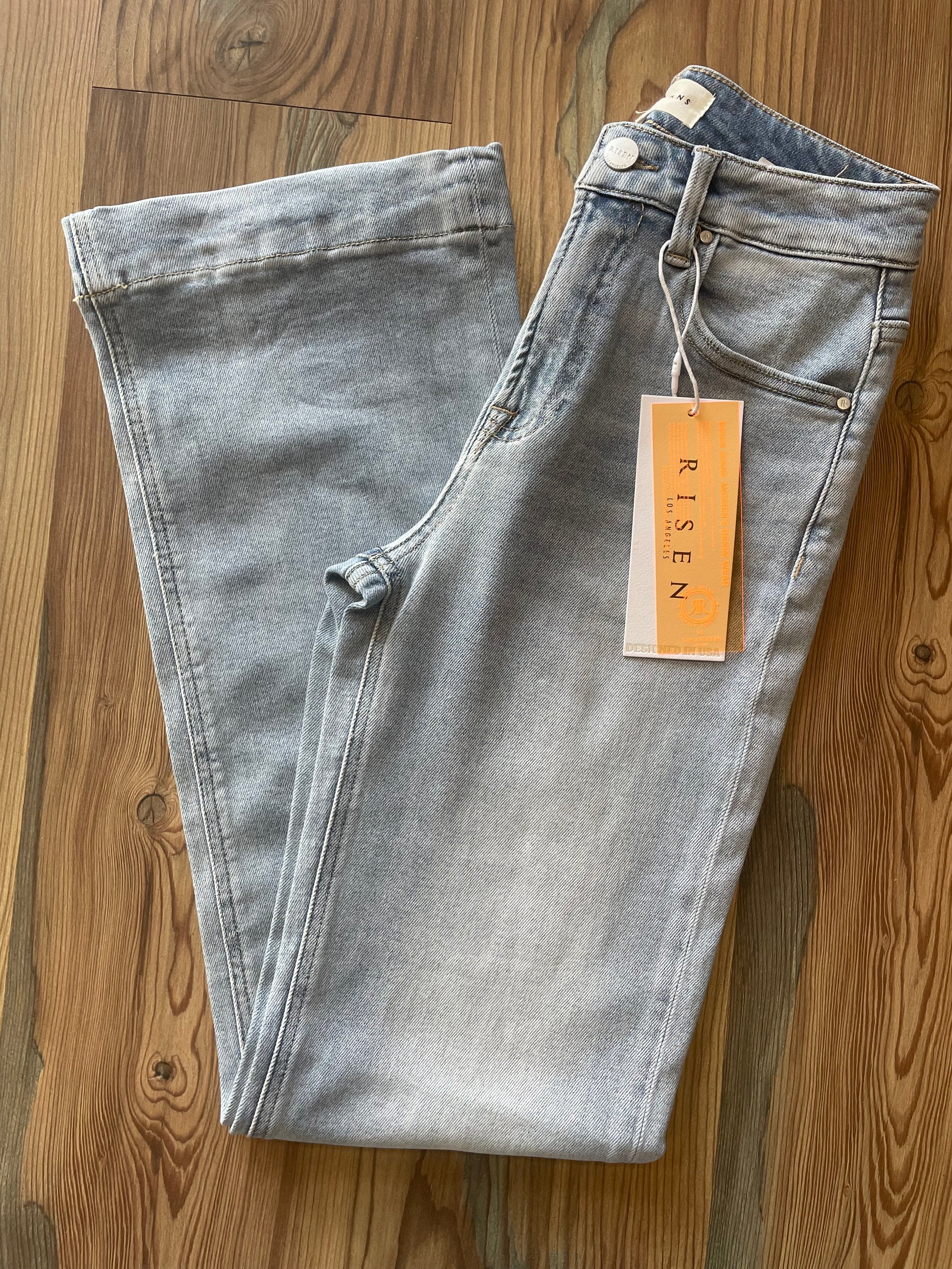 Rise Up In Style With Our Risen High Rise Light Straight Jeans. These Light Wash Beauties Feature A High Waist, Straight Leg Fit, And Zero Distressing.