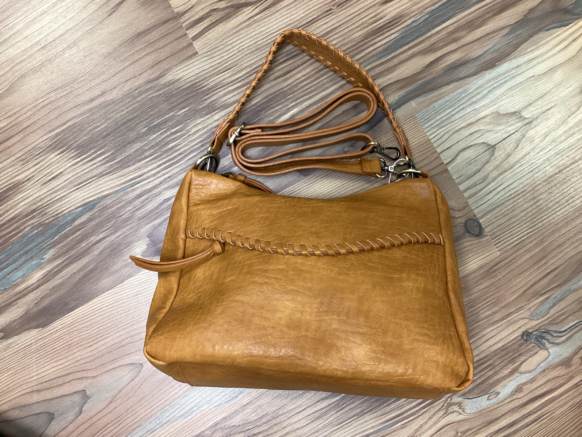 Get Your Hands On This Whiskey Brown Cassidy Whipstitch Crossbody Boho Bag! Made With Brown Crinkle Vegan Leather, This Chic Black Hobo Bag Features Eye Catching Whipstitch Trim Detailing. Perfect For The Environmentally Conscious Fashionista On The Go.